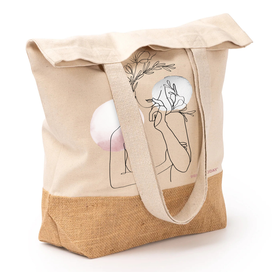 Bolso combinado en yute natural y algodón reciclado de 330 g/m²