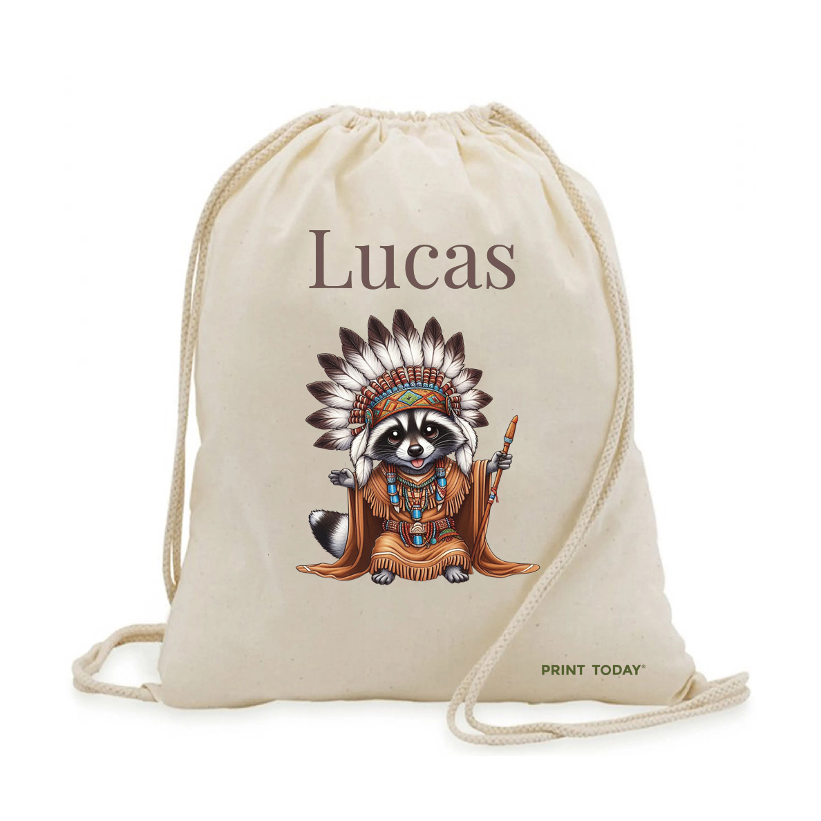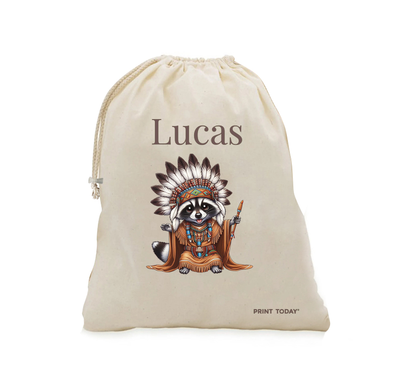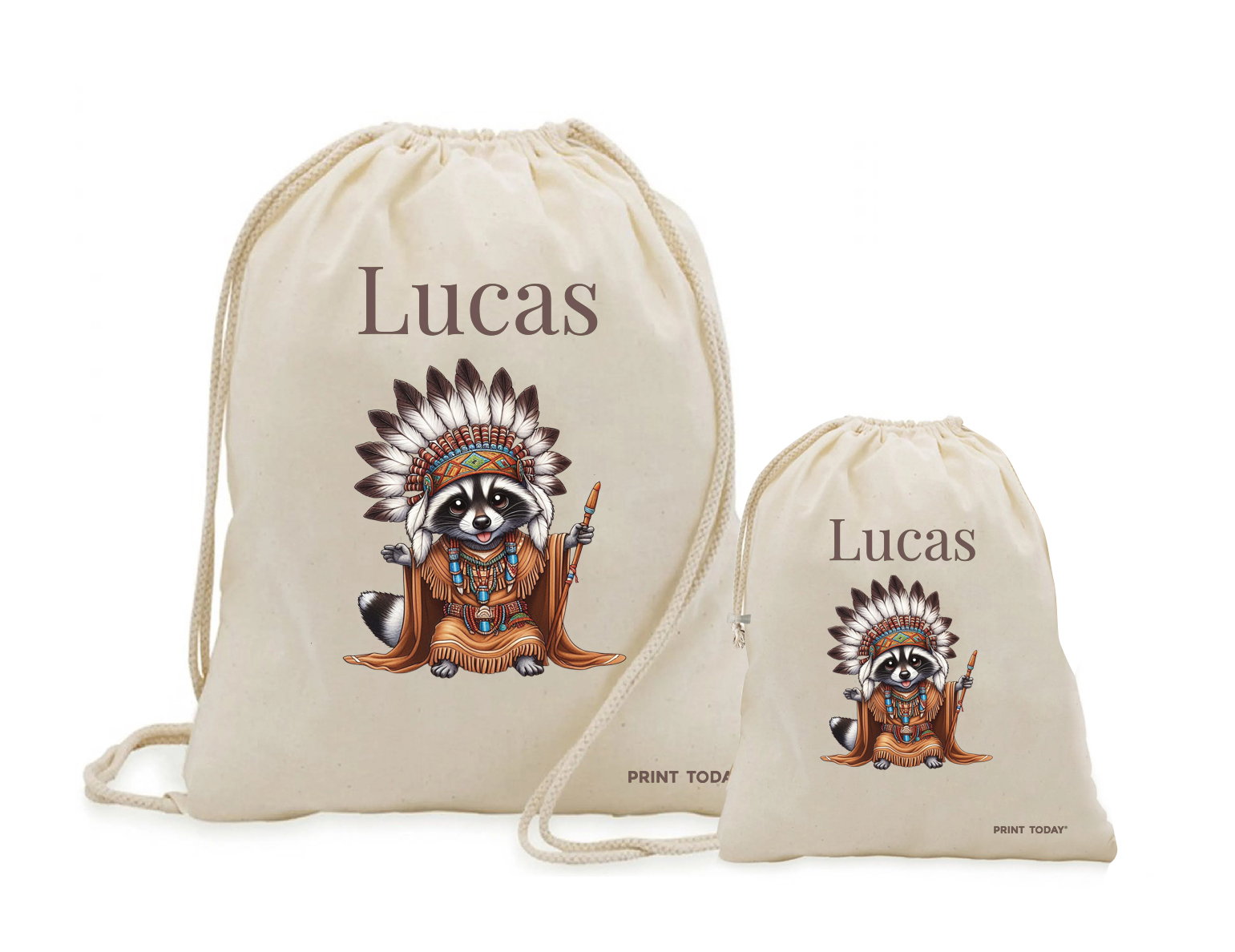 Pack para la vuelta al cole: mochila de cuerdas + bolsita de merienda. Con estampado de Mapache.